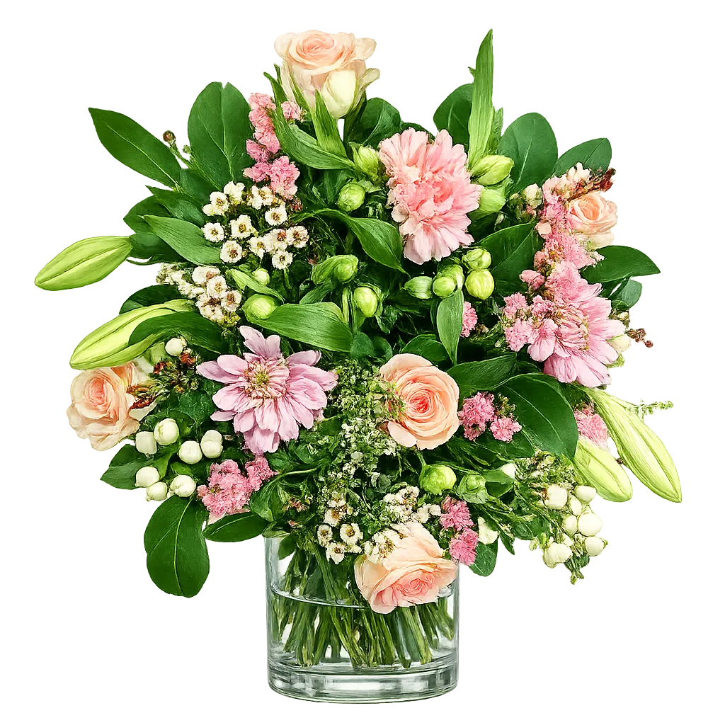 Een harmonie van zachte pastelkleuren en luchtige bloemen, subtiel en romantisch geschikt voor elke bijzondere gelegenheid.