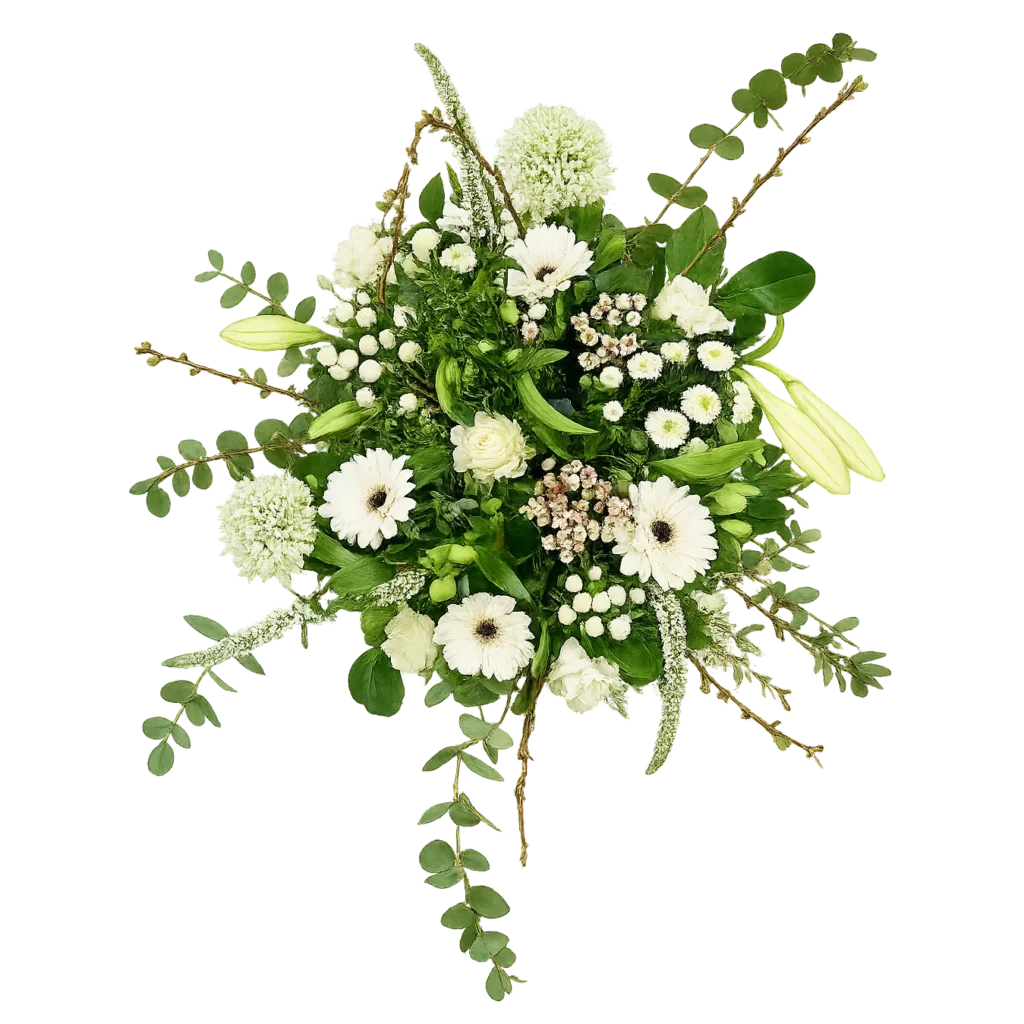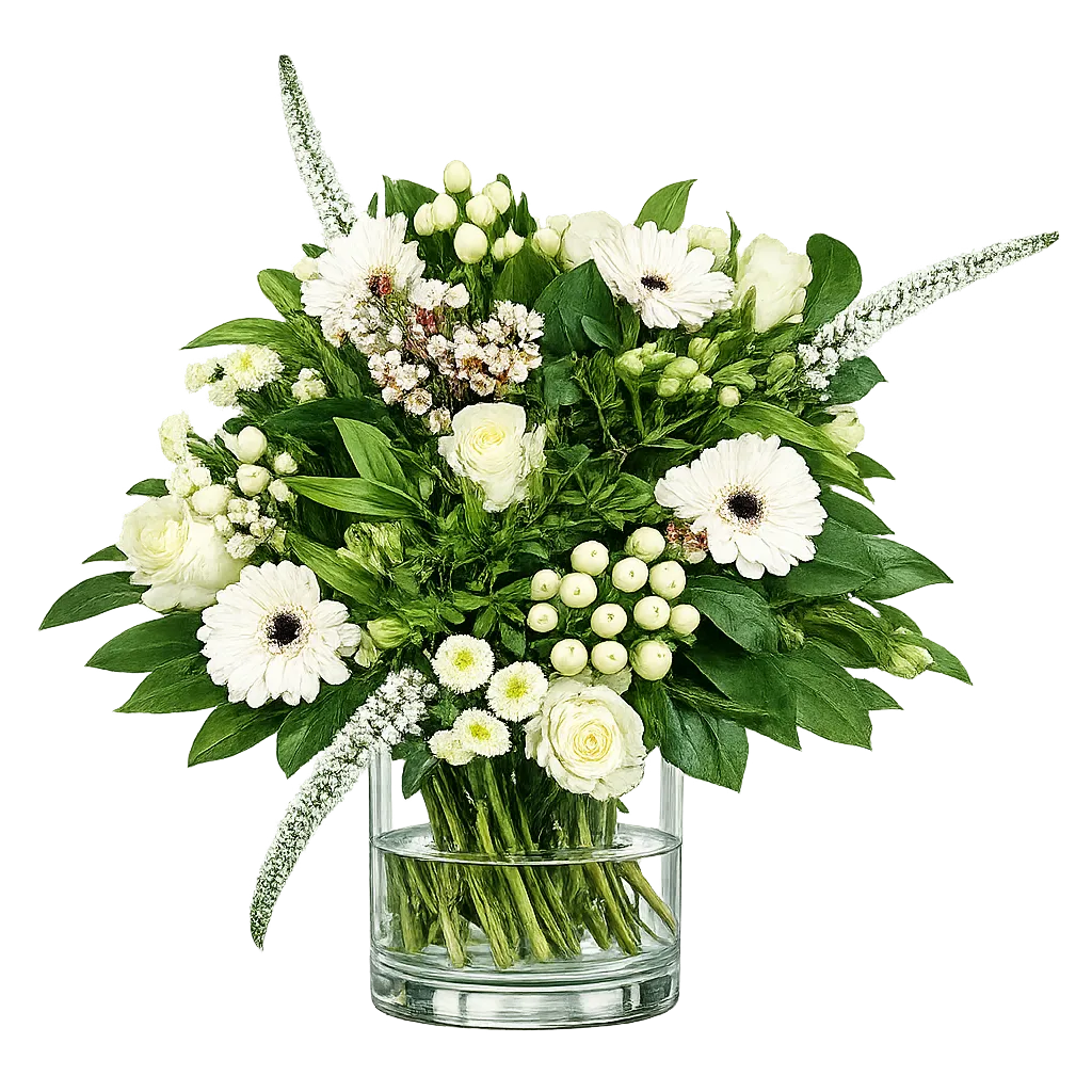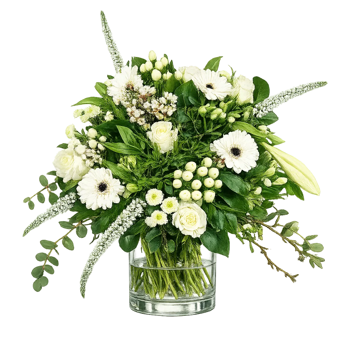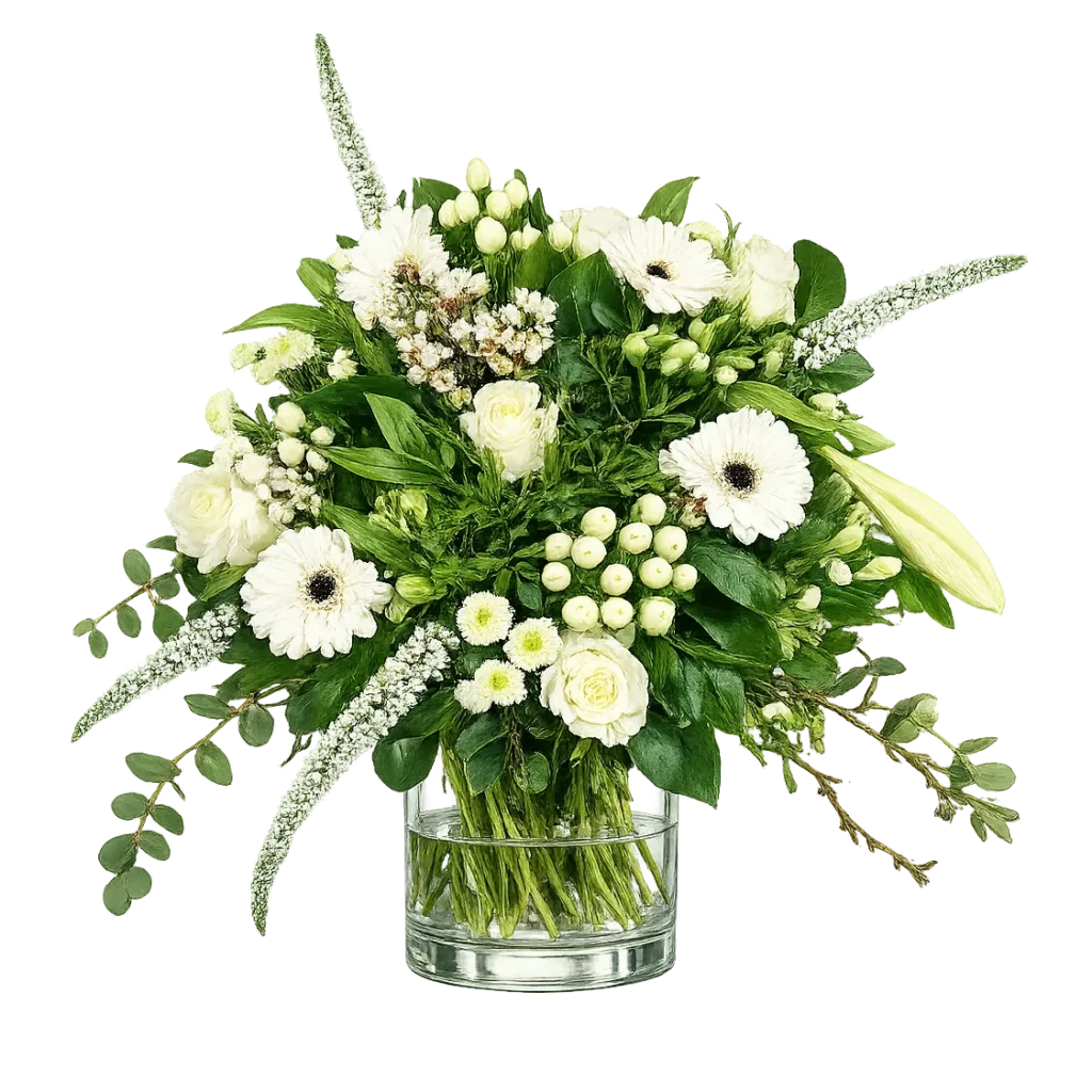 Een stijlvol wit boeket met verfijnde nuances en een serene uitstraling.