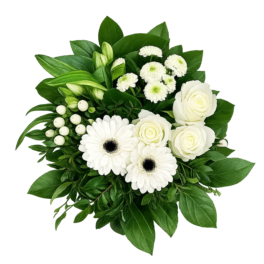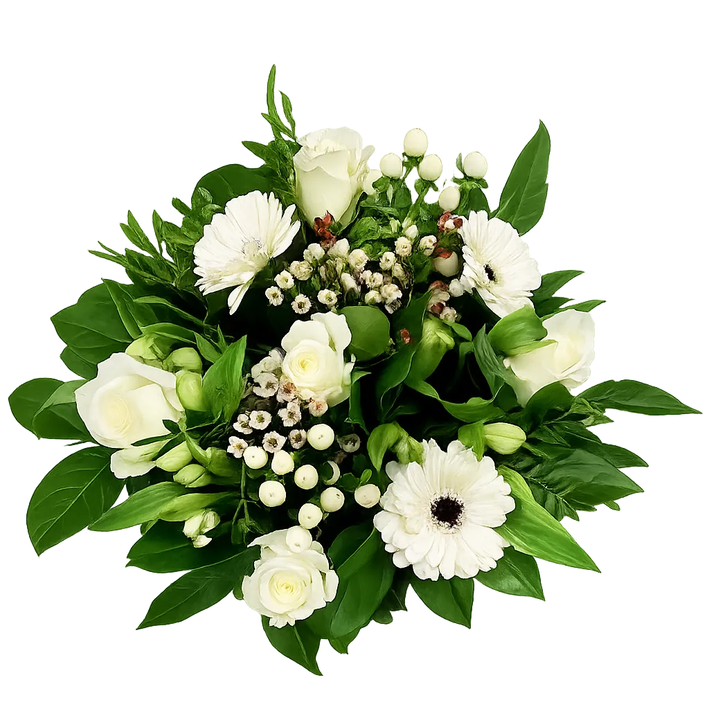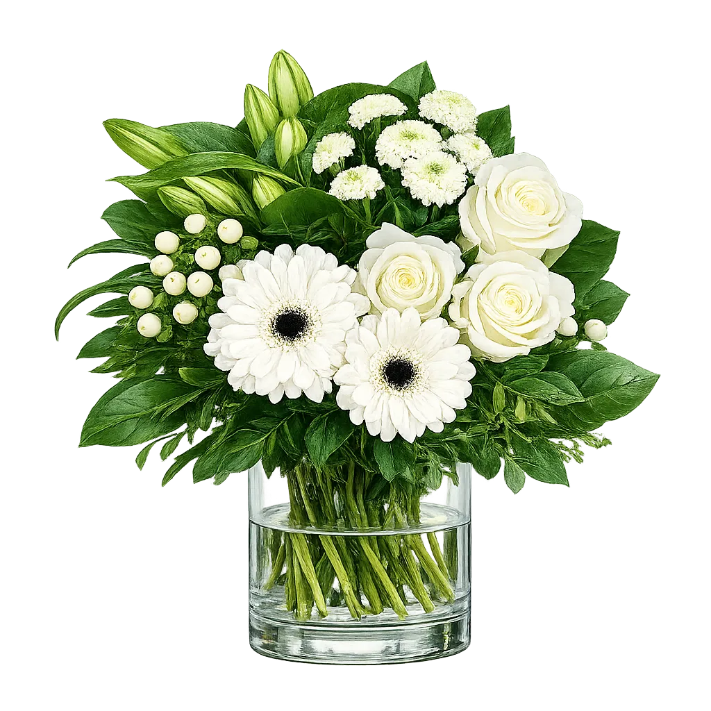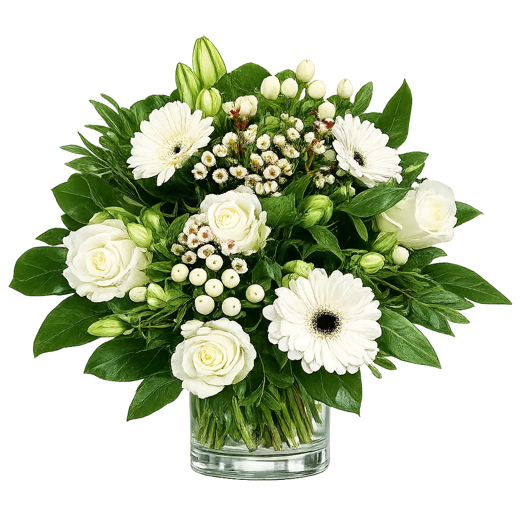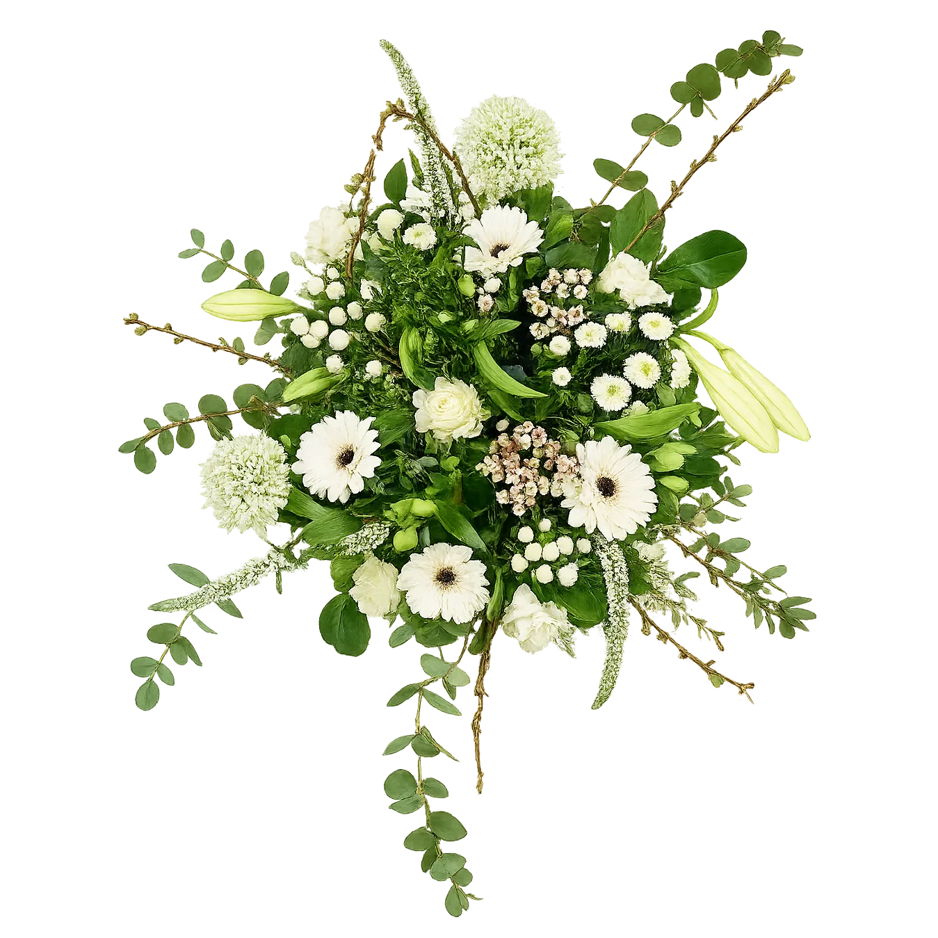 Een stijlvol wit boeket met verfijnde nuances en een serene uitstraling.